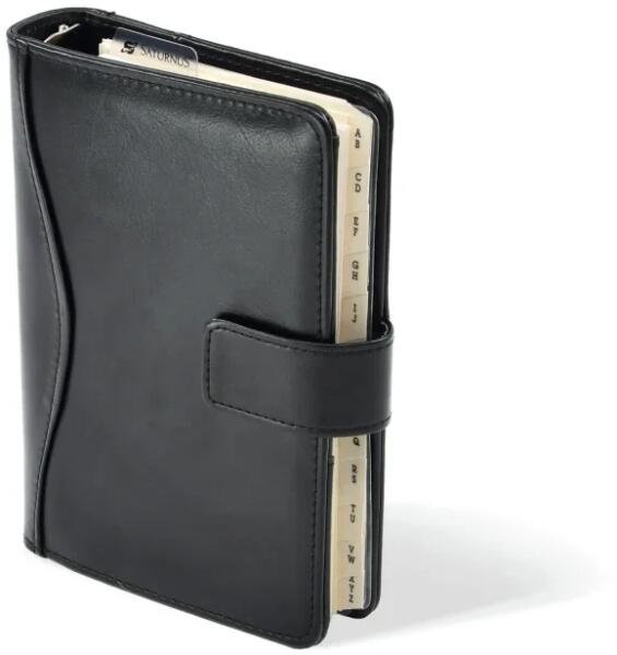 Saturnus Gyűrűs kalendárium L231 Műbőr Fekete Fényes, bőrhatású műbőrből készült, patenttal záródó kalendárium Borítók belső oldalán praktikus zsebek, bankkártya- és tolltartó A naptárcsomag (S311, M311, L311) külön is kapható, így évente aktualizálható Többféle hasznos jegyzet- és tematikus lappal, illetve kiegészítővel bővíthető Saját jegyzetek, táblá