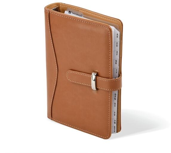 A Saturnus gyűrűs kalendárium egyszerre cél és időtervező eszköz. Rugalmassá teszi időbeosztását, támogatja a feladatmegoldásait, helyet ad a személyes dokumentumainak, segítségével "Magától lesz rend!" Simított felületű, marhabőrből készült kalendárium. Szitázással, présfólia- és vaknyomással emblémázható. A Saturnus minőségi kalendáriumai mindegyike rendk