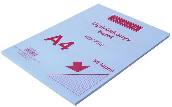 Caesar A4 50lapos kockás gyűrűskönyv betét - 50 lapos lyukasztott betétlap A4 méretben - 4 gyűrűs könyvekbe fűzhető le - Típus: A4 kockás
