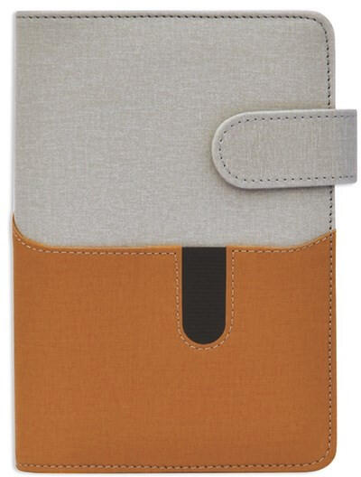 Gyűrűs kalendárium SATURNUS M229 sárga lapos szürke-barna műbőr 2025. Divatos színösszeállításban, borítóján praktikus zsebbel készült, rejtett mágnessel záródó kalendárium. Szitázással, présfólia- és vaknyomással emblémázható.