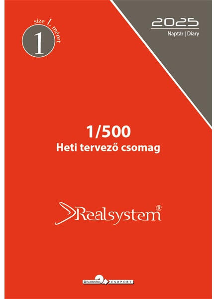 Realsystem 1/500 éves heti beosztású gyűrűs naptár kiegészítő Éves tervező csomag, chamois papíros, 1/500 éves, heti beosztású. Lapméret: 146x210 mm (L)