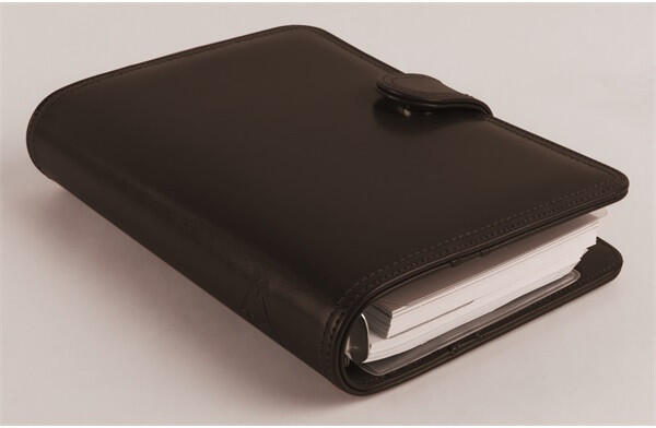 fényes, bőrhatűsú borító bújtatóval záródik lapok 70 g, fehér ofszet tartalma :NK*311F betétlapcsomag betétlap mérete: "M": 95x171 mm ("Personal", 2)