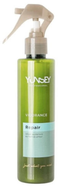 HajápolóYunsey Vigorance Repair kétfázisú tápláló regeneráló spray, 200 ml Kétfázisú tápláló spray, amely egy lépésben kibontja és kondicionálja a hajat anélkül, hogy túlterhelné vagy zsírosítaná A felső fázis: - Segít a haj azonnali kibogozásában- Helyreállítja a töredezett hajvégeket- Intenzív fényt kölcsönöz a haj kutikulájának- A külső felületre ha