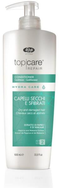 Lisap Top Care Repair Hydra Care balzsam száraz és töredezett hajra, 1 l- Visszaállítja a száraz és töredezett haj szépségét és fényét - Ceramide A2-t, Papyrus kivonatot, Wakamet és Hydra Care komplexet tartalmaz, amely erősebbé teszi, fényessé és lággyá varázsolja a hajat - Eljuttatja a megfelelő tápanyagokat a nagyon száraz hajvégekhez, megerősítve és megújítva be