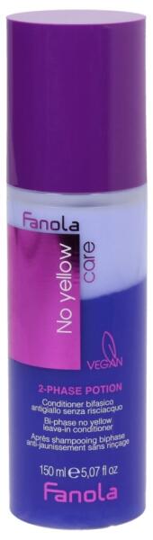 Hajápoló > HajbalzsamFanola No Yellow 2-fázisú kondicionáló, 150 ml- Leave-in hajban hagyható hamvasító kondicionáló lila pigmentekkel - Szőke, szőkített, melírozott és ősz hajra ajánljuk a használatát - Közömbösíti a hajhab lévő nemkívánatos sárga tónusokat - A szöszösödés és a pára ellen védőréteget képez a hajszálak körül - Használtalával a haj k