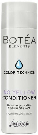 Hamvasító hajbalzsam kék pigmentekkel, mely semlegesíti az ősz, a természetes szőke, és a szőkített haj sárgás tónusait. A Carin Botéa No Yellow balzsam 200 ml egy professzionális hajápoló termék, amely semlegesíti a nem kívánt sárga árnyalatokat a szőke, melírozott vagy ősz hajon. A termék tartalmaz búzaproteint és az E-vitamint, amelyek hidratálják, táplálják é