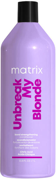 Matrix Unbreak My Blonde kondicionáló használata után szőke haja teli lesz erővel és életerővel. Citromsav: visszaadja a haj bársonyos puhaságát és ragyogó fényét. Mélyen regenerálja a sérült hajat, ellátva a szükséges táplálással és az elvesztett erővel. Egyedi tulajdonságok: Regenerálja a sérült szőke hajat, visszaadja a haj erejét és vitalitását, puhává é