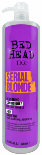 Hajápoló > Hajbalzsam Tigi Bed Head Serial Blonde kondicionáló sérült szőke hajra, 970 ml - Színerősítő formulával kiegészítve szakemberek által tervezve- Szalon színvonalú eredmények otthon- Színvédő technológiával megalkotva- Ápol és újjáéleszti a hajat- Segít visszaállítani a festett szőke hajat brilliáns, legjobb állapotába- Újjáépíti a sérült hajsze