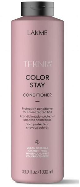 Lakmé Teknia Color Stay színvédő balzsam festett hajra, 1000 ml - Fenntartja a festett haj színmélységét, tónusát és fényét - Savas pH-ja lezárja a haj kutikuláját - Táplálja és hidratálja a hajat - Puha, sima és gubancmentes hajat eredményez - Növeli a szín élettartamát - Kifejezetten a festett haj fenntartására és javítására készült Használat: - Egyenletesen os