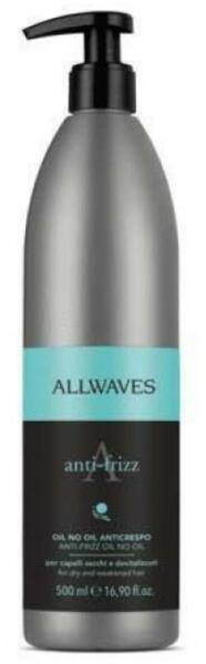 Hajápoló > Kifésülő balzsamAllwaves Anti-Frizz Oil No Oil száraz és élettelen hajra, 500 ml- Olaj, olaj nélkül, ami segít megszelídíteni és kontrollálni a száraz és göndör hajat - Haja könnyen kifésülhetővé válik - A termék könnyű állagának köszönhetően nem nehezíti el a hajat - A göndör és rakoncátlan haj selymessé és puhává válik - Megvédi a haját