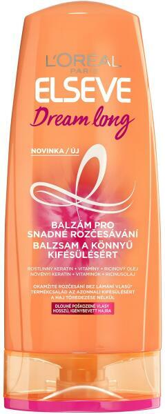 A L'Oreal Paris Elseve Dream Long „Könnyebb fésülés szuper hajbalzsam kifejezetten a hosszú haj lágyabbá tételére szolgál, amelyet a negatív környezeti tényezők, a különféle hajformázó eszközök gyakori használata vagy a hajfestés gyengített le. A keratinnak köszönhetően, amely a haj építő fehérjéje, a termék könnyen helyreállítja a kutikula sérült részeit.