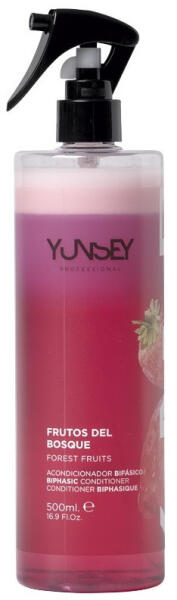 Yunsey Vigorance eper és erdei gyümölcsök kétfázisú kifésülőbalzsam, 500 ml - Kondicionáló és kócbontó hatású spray - A vízes fázis aktív kondicionáló összetevőket és proteineket tartalmaz, melyek ápolják, táplálják és javítják a hajat - A felső fázis megvédi a hajat a káros hatásoktól és puhává, könnyen fésülhetővé, dússá varázsolja - Antisztatiku