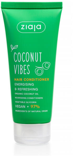 Ziaja coconut vibes hajbalzsam 100 ml Tápláló "booster" kondicionáló kókuszdióval. Gazdag, krémes textúrával és finom kókuszdió nektár illattal rendelkezik. Regenerálja a hajat és fényt ad a hajnak. Kisimítja a hajat és megakadályozza annak göndörödését. Használható "előkezelésként", azaz a samponozás előtt. Fő összetevők: bio kókuszolaj, tápláló kondícioná