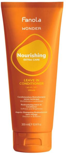 Fanola Wonder Nourishing Leave-in hajhan hagyható kondicionáló, 300 ml- Hajszerkezet átalakító és ápoló kondicionáló - Nem kiöblítendő balzsam - Ideális a száraz, fénytelen és szöszösödésre hajlamos hajtípus esetén - Használatával a haj fényes, ápolt, könnyen kifésülhető, sima és jobban formázható lesz - Vegán termék Használata: - A Fanola Wonder Nourishing sa