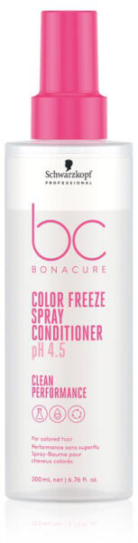 Emelje ki festett hajának gazdag árnyalatait, miközben a hajat megfelelő ápolásban részesíti. A Schwarzkopf Professional BC Bonacure Color Freeze kondicionáló spray megakadályozza a szín kifakulását, miközben a pH 4,5 Balancer technológiának köszönhetően élénkíti a színt. A haj könnyebben formázható a használat után, és a hőkezeléssel szemben is védett. A Color Fre