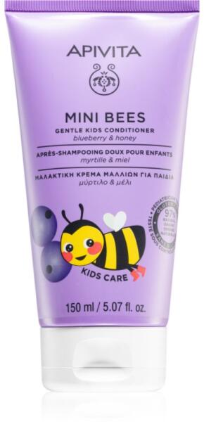 Apivita Mini Bees Gentle Kids Conditioner Blueberry & Honey, 150 ml, Hajbalzsamok gyerekeknek gyermekeknek, A gyermekek vékony szálú haja még jobban hajlamos a töredezésre és sérülésre. A hajmosást követően megfelelő ápolást nyújt a Apivita Mini Bees Gentle Kids Conditioner Blueberry & Honey hajkondicionáló gyermekeknek. Ráadásul használata mellett gyorsabban kifésü