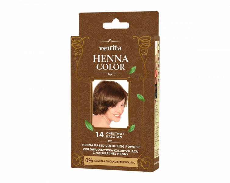 A Henna hajszínező porok gyengyéd hajszínezők hennával. A henna jótékony hatása hajra és fejbőrre ismert. A hennának erősítő, antiszeptikus hatása van. Használatától a haj fényes, dús, lágy lesz. A henna gondosan kiválasztott, ellenőrzött indiai vagy egyiptomi forrásból származik, nehézfémektől és p-feniléndiamintól (PPD) mentes-> bizonyos henna tetoválásokn