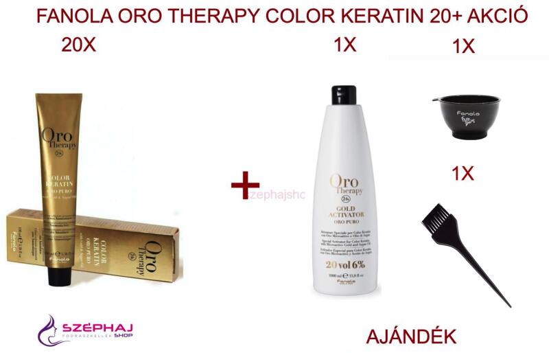 FANOLA ORO Therapy 24K Ammonia Free Permanent Color 100 ml 20+ AKCIÓ A: Egy nagyszerű lehetőség, hogy most még kedvezőbben kipróbáld a FANOLA ORO Therapy 24K Ammonia Free Permanent Color 100 ml hajfestéket! Vásárolj 20 db FANOLA ORO Therapy 24K Ammonia Free Permanent Color 100 ml hajfestéket és mi megajándékpozunk: Ajándék termék: - 1 db 1 db FANOLA Oro Therapy 24k Gold Aktiváto