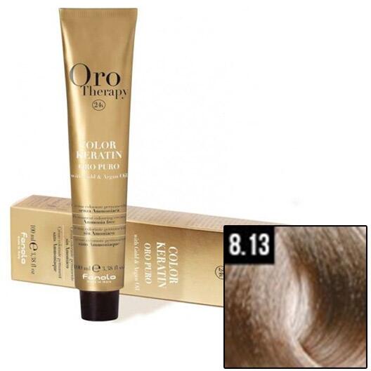 FANOLA ORO Therapy 24K Ammonia Free Permanent Color 8.13 100 ml: A Fanola Oro Therapy 24K Ammonia Free Permanent Color tartós ammóniamentes hajfesték ideális a tökéletes divatszínek kíméletes megfestésére. A színpigmenteket a hajfestékben az arany mikrorészecskék aktiválják és felerősítik, amelyek a haj szerkezetébe jutnak. Segít megőrizni a haj egészséges állapotát a ke