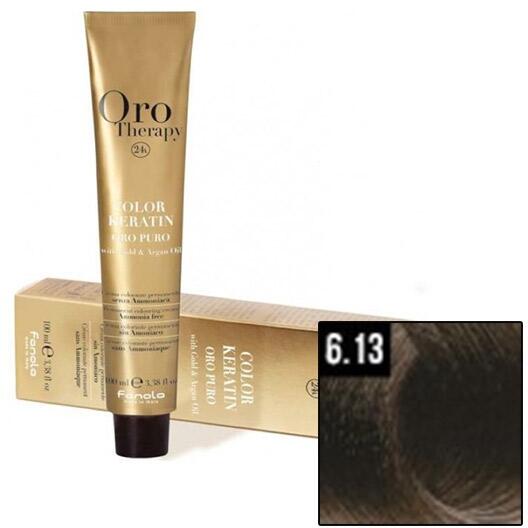 FANOLA ORO Therapy 24K Ammonia Free Permanent Color 6.13 100 ml: A Fanola Oro Therapy 24K Ammonia Free Permanent Color tartós ammóniamentes hajfesték ideális a tökéletes divatszínek kíméletes megfestésére. A színpigmenteket a hajfestékben az arany mikrorészecskék aktiválják és felerősítik, amelyek a haj szerkezetébe jutnak. Segít megőrizni a haj egészséges állapotát a ke