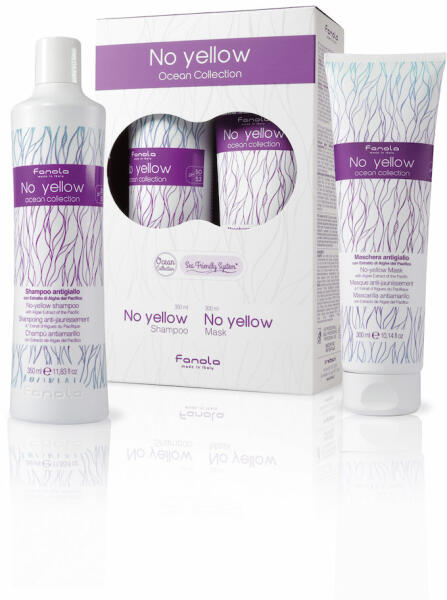 FANOLA No Yellow Ocean Collection - Sea Friendly System: A csomag tartalma: No Yellow sampon 350 ml + No Yellow Maszk 300 ml A No Yellow Óceán kollekció Csendes óceáni algakivonatot és növényi eredetű aktív adalékanyagokat tartalmaz, melyeket felelősségteljesen, környezetet kimélő módon dolgoznak fel a lagúnákon kívüli farmokon.