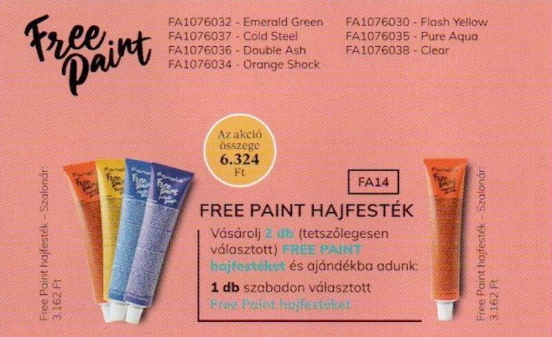 FA14 FANOLA FREE PAINT DIRECT COLOR 3+1 AKCIÓ: Vásárold meg a FANOLA márka Free Paint Direct Color szinező 2 féle színét (Szabadon vállaszthatóan egy-egy darabot!) 6.325 Ft értékben és ajándékba adunk: - 1 db FANOLA Free Paint 60 ml festéket, mely szintén szabadon választható A KÉSZLET EREJÉIG! RENDELKEZÉSRE ÁLLÓ SZÍNEK: FANOLA Free Paint Direct Color Cold Steel 60 ml FANO