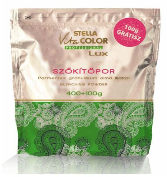 STELLA VitaColor LUX szőkítőpor önzárós tasakban 400+100 grKedvező ár, grátisz 100 gr beltartalom, luxus minőség! Magas teljesítményű szőkítőpor a maximális világosításért!Pormentes mikrogranulátum, mely a használat során nem képez porfelhőt, ezáltal csökkenti az allergia kialakulásának veszélyét. Lehetővé teszi a haj biztonságos és kitűnő világosítását.