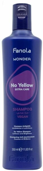 FANOLA WONDER No Yellow Extra Care Shampoo Vegan 350 ml: A Fanola Wonder No Yellow Extra Care sampon 350 ml semlegesíti a nem kívánt sárga tónusokat, és extra puhaságot és fényességet kölcsönöz a hajnak. A No Yellow Extra Care dúsított formulája a szőke, szőkített vagy ősz hajat üdévé, egészségessé és fényessé varázsolja. A formula ibolya pigmentet tartalmaz, amely se