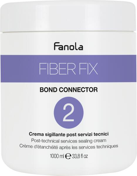 FANOLA FIBER FIX Bond Connector N°2 1000 ml: A technikai szolgáltatások lezárására kifejlesztett gyógyító kezelés. Egy gazdag savas pH-értékű készítmény, mely rögzíti a hajszínt, elmélyíti a szolgáltatások eredményét, miközben lezárja a kutikulát. Hatékonyan védi és táplálja a hajat. Ideális hajfestéshez, szőkítéshez vagy kiegészítőként és stabilizálók