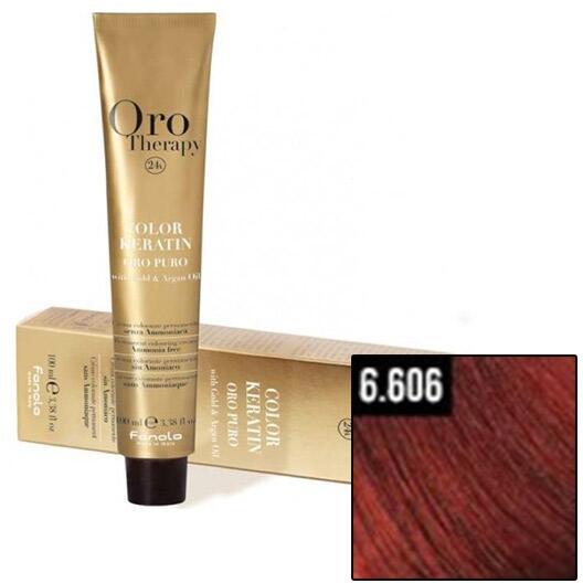 FANOLA ORO Therapy 24K Ammonia Free Permanent Color 6.606 100 ml: A Fanola Oro Therapy 24K Ammonia Free Permanent Color tartós ammóniamentes hajfesték ideális a tökéletes divatszínek kíméletes megfestésére. A színpigmenteket a hajfestékben az arany mikrorészecskék aktiválják és felerősítik, amelyek a haj szerkezetébe jutnak. Segít megőrizni a haj egészséges állapotát a k