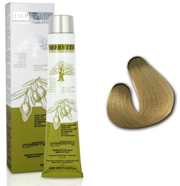 Az Impevita kímélő krémhajfesték garantálja az ősz hajszálak akár 100%-os fedését és a természetes hajszín négy árnyalatú felvilágosítását, A gondosan kiválasztott 4 féle bio olaj: olíva-, argán-, napraforgó-, és szőlőmagolaj egyedi kombinációja biztosítja a természet által nyújtott ápoló, védő hatást a haj számára. Használata: 40vol: 3 vagy 4 árnyalatta
