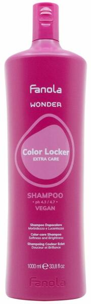 FANOLA WONDER Color Locker Extra Care Shampoo Vegan 1000 ml: A Fanola Wonder Color Locker Extra Care Shampoo 1000ml színvédő sampon a puha és ragyogó hajért. A Color Locker sampon ideális festett és kémiailag kezelt hajra. Az ultrapuha formula nem tartalmaz SLS-t, és tisztítja a hajat, miközben hidratálja, puhítja és fényesíti a hajat. A sampon nátrium-glükonát alapú technoló