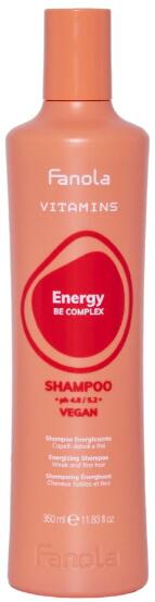 FANOLA VITAMINS Energy Be Complex Shampoo Vegan 350 ml Energizáló sampon. Ideális gyenge és vékonyszálú hajra. Vitaminok és speciális hatóanyagok tökéletes kombinációja a fejbőr és a haj egészségéért. A Be Complex egy innovatív, B és E vitaminból álló komplex, amely képes hatékonyan ellensúlyozni a fejbőr rendellenességeit okozó problémákat, mint a hajhullás, zsí