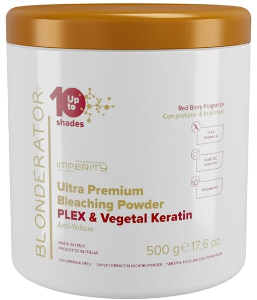 Blonderator ultra prémium szőkítőpor, mely akár 10 árnyalatnyi világosításra is alkalmas. A korszerű PLEX formula védő, újrastruktúráló hatásának és a növényi keratinban gazdag összetevők tápláló erejének köszönhetően a haj fényesen ragyog, egészséges és kondicionált marad. Lila színű, piros gyümölcs illatú, kompakt, porzás és csepegés mentes, csak enyhe