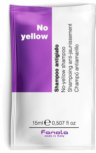 FANOLA No Yellow Sampon 15 ml: Hamvasító sampon. Szőkített, melírozott és ősz hajra ajánlott, haj besárgulása ellen. A szőkítés után besárgult hajnak visszaadja a természetes hamvas színét, helyre állítja a megkínzott szerkezetét. Ápoló anyagai selymessé, kezelhetővé teszik a hajat. Nem szárít, véd és gondosan tisztít. Felfrissíti a sárgult melírokat, kivilágos