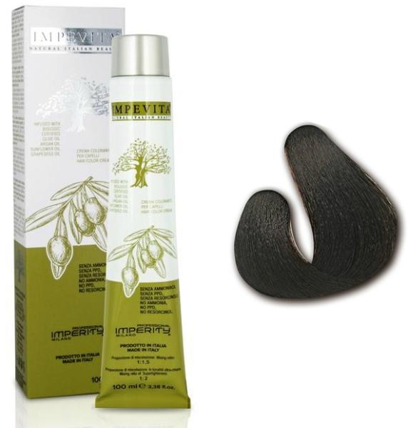 Az Impevita kímélő krémhajfesték garantálja az ősz hajszálak akár 100%-os fedését és a természetes hajszín négy árnyalatú felvilágosítását, A gondosan kiválasztott 4 féle bio olaj: olíva-, argán-, napraforgó-, és szőlőmagolaj egyedi kombinációja biztosítja a természet által nyújtott ápoló, védő hatást a haj számára. Használata: 40vol: 3 vagy 4 árnyalatta