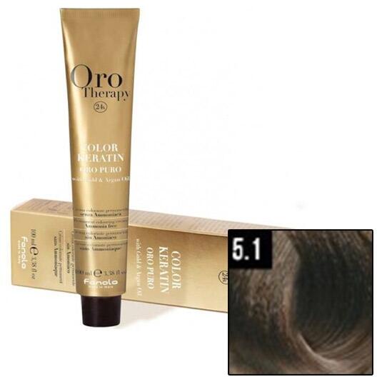 FANOLA ORO Therapy 24K Ammonia Free Permanent Color 5.1 100 ml: A Fanola Oro Therapy 24K Ammonia Free Permanent Color tartós ammóniamentes hajfesték ideális a tökéletes divatszínek kíméletes megfestésére. A színpigmenteket a hajfestékben az arany mikrorészecskék aktiválják és felerősítik, amelyek a haj szerkezetébe jutnak. Segít megőrizni a haj egészséges állapotát a ker