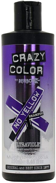 CRAZY COLOR Anti Yellow Shampoo Ultra Violet 250 ml: 100% szulfátmentes formula. Az ultraibolya pigmentek közömbösítik a nem kívánt sárga és arany tónusokat. Tiszta, szuperszőke, hamvas alapot hoz létre a festett szőke hajnak. Hosszan megőrizni az élénk hajszínt. Használati utasítás:Alkalmazza a nedves hajra, és finoman masszírozza be a haj gyökértől a hajvégekig. Hagyja