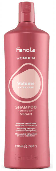 FANOLA WONDER Volume Extra Care Vegan Shampoo 1000 ml: A Fanola Wonder Volume sampon szakértelemmel készült professzionális fodrászok számára, akik nagy teljesítményű, kivételes eredményeket biztosító termékeket igényelnek. Kifejezetten vékony, élettelen hajra készült, vegánbarát sampon, amely a lapos tincseket terjedelmes, ugrálós stílusokká alakítja. Könnyű formuláj