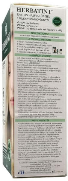 Tartós hajfesték, mely tökéletes fedést biztosít az ősz hajszálakon is, táplálva és védve a fejbőrt illetve a hajszálakat, mindezt a haj károsodása nélkül. 135 ml-es hajfesték; Herbatint termék hajfestéshez.
