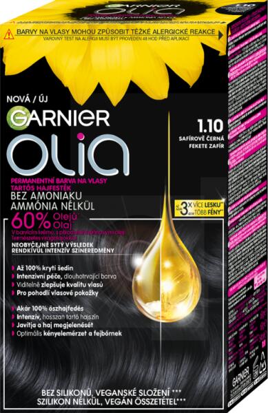 A Garnier Olia egy tartós hajfesték 60%-os olajtartalommal, ammónia és szilikonok nélkül. Olaj alapú bejuttató rendszer a festéket intenzíven a hajrost szívébe juttatja a rendkívül erőteljes színeredményért. A csomagolás immár applikátort is tartalmaz, amely megkönnyíti a felvitelt. Az Olia akár 100%-ban fedi az ősz hajszálakat. Intenzív ápolója láthatóan megszépít