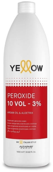 Yellow hidrogén peroxid 3%, 1 l - A Yellow krémhidrogén peroxidot nagyszerű viaszokkal gazdagítottuk, hogy védje a hajszálakat a festési eljárás alatt - Az eredmény mindenhol egységes, csillogó haj - A termék állaga krémes és illatos, olyan stabilizáló anyagokkal gazdagítva, amelyek garantálják a nagyszerű minôséget, és minden eljárásnál a legjobb oxidációt Kiszerel