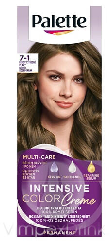 Termékleírás Jellemzők Multi-Care hajfestés közben és után, Hosszan tartó intenzív színeredmény, 100%-os őszhajfedés Termék információk Palette Intensive Color Creme - Ápoló és hosszan tartó krémhajfesték A Palette ICC intenzív krémhajfestékben lévő keratin, valamint az ápoló maszkban található pantenol és regeneráló szérum többszintű ápolást biztosít a haj