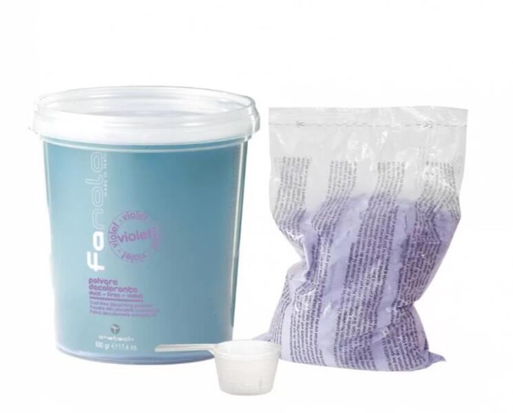Fanola szőkítőpor lila tégelyben, 500 g - Kiemelkedő minőségű lila pigmentes szőkítő por, a sárga tónusok kiküszöbölésére- Keverési arány 1:2- Egy új generációs porzás mentes szőkítő por lila pigmentekkel- Ideális melírozására, szőkítésre és minden egyéb világosítási technikára egyaránt- Az új fejlesztésű összetétel csökkenti a kockázatokat az irrit