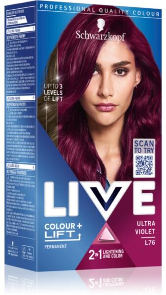 Schwarzkopf LIVE Colour + Lift, 1 db, Tartós hajfesték nőknek, Hosszan tartó, élénk színt szeretne, elfedné az ősz hajszálakat vagy teljesen megváltoztatná a hajszínét? Az ideális Schwarzkopf LIVE Colour + Lift tartós hajfesték biztosítja a kívánt eredményt. Intenzív színt és élénk fényt kölcsönöz a hajnak, de a félig tartós festékekkel, fedőfestékekkel és szín