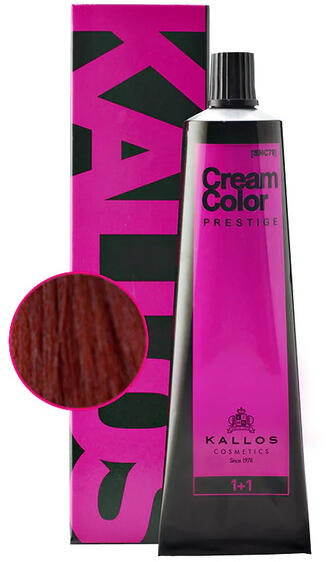 Kallos Prestige color 1:1 kímélő hajfesték. Tartós, csillogó és természetes hajszínt biztosít, az ősz hajszálakat tökéletesen fedi. Csökkentett ammónium-hidroxid tartalma kíméletes kezelést tesz lehetővé. Színmegtartó képessége kiváló, ellenáll a káros környezetei hatásoknak. 6 tónusnyi világosítást tesz lehetővé. 1 doboz hajfesték tartalma 60ml, melyhez 60ml