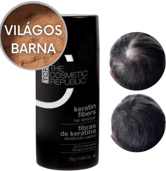 80 alkalomra elegendő! A TCR keratin fibers színek egy innovatív és hatékony megoldást kínálnak azok számára, akik el szeretnék fedni a hajuk ritkább részeit, ősz hajszálakat vagy egyszerűen ideiglenes hajszínkorrekcióra van szükségük. Mivel ellenállnak az esőnek, szélnek és izzadásnak, nem folynak el, nem színeződnek el, és nem hagynak foltot, a keratin mikroszálak p