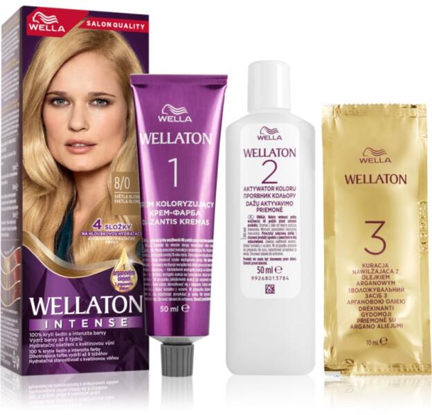 Wella Wellaton Intense, 1 db, Hajfestékek nőknek, Hosszan tartó, élénk színt szeretne, elfedné az ősz hajszálakat vagy teljesen megváltoztatná a hajszínét? Az ideális Wella Wellaton Intense tartós hajfesték biztosítja a kívánt eredményt. Intenzív színt és élénk fényt kölcsönöz a hajnak, de a félig tartós festékekkel, fedőfestékekkel és színezett samponokkal elle
