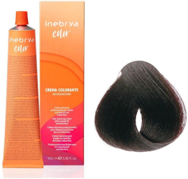 Inebrya Color PPD-mentes hajfesték - Professzionális hajfesték - 100% őszfedést biztosít - Intenzív színek, ragyogó és tartós színárnyalatok - Lenmagolaj és Aloe Vera összetevőinek köszönhetően nem irritálja a fejbőrt és aktívan táplálja és ápolja a hajat - PPD mentes hajfesték Keverési arány: - Normál árnyalatok: 1:1,5, pl. 30 g hajfesték + 45 g hidrogén-peroxid