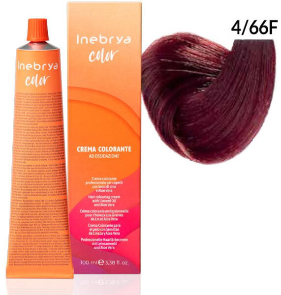 Inebrya Color PPD-mentes hajfesték - Professzionális hajfesték - 100% őszfedést biztosít - Intenzív színek, ragyogó és tartós színárnyalatok - Lenmagolaj és Aloe Vera összetevőinek köszönhetően nem irritálja a fejbőrt és aktívan táplálja és ápolja a hajat - PPD mentes hajfesték Keverési arány: - Normál árnyalatok: 1:1,5, pl. 30 g hajfesték + 45 g hidrogén-peroxid